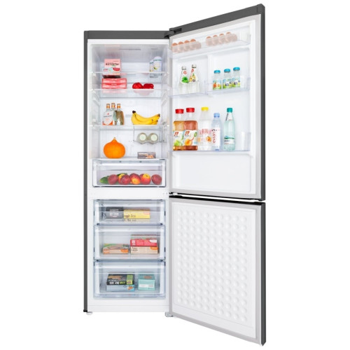 Современный двухкамерный холодильник высотой 187 см с сенсорным управлением MFF187NF10 - новые технологии для хранения. Благодаря системе охлаждения TOTAL NO FROST на стенках холодильника не образуется иней, а разморозка происходит автоматически. Сенсорная панель с интеллектуальным управлением. С ней вы сможете установить температуру каждого отсека по отдельности. Холодильник с классом энергопотребления А+. Экономичный холодильник, который тратит мало электроэнергии и экономит ваши средства. Передовые технологии — уровень шума 42дБ. Модель оборудована современным компрессором, который позволяет экономить электроэнергию и снижает уровень шума. Хладагент R600A ""Зеленые"" технологии — абсолютно безвреден для окружающей среды, экономичен и энергоэффективен. Такой хладагент не причиняет вреда озоновому слою. Сигнализация открытой двери. Сигнализация сработает через 2 минуты. Если вы забыли закрыть дверцу, сработает звуковой сигнал, который можно будет отключить, плотно захлопнув дверцу. Функция быстрой заморозки способствует сохранению свежести и витаминов в продуктах, хранящихся в морозильной камере. Режим ""Отпуск"" — экономичное потребление электроэнергии в ваше отсутствие. В холодильном отделении не будет неприятных запахов, а в морозильной камере будет установлена температура на уровне —14С. Функция ""Быстрое охлаждение"" позволит надолго сохранить свежесть большого количества продуктов. Функция ECO обеспечивает длительное сохранение свежести продуктов и активирует работу холодильника в режиме оптимальной энергоэффективности. Блокировка от детей, чтобы предотвратить неправильное функционирование прибора в результате случайного сброса настроек. Металлические фреймы на полках. Если на полке прольётся жидкость, металлический фрейм не даст ей стечь вниз. Винная полка. Удобная полка для хранения бутылок позволит вам охладить напитки перед подачей на стол. Яркая равномерная LED подсветка обеспечивает отличный обзор продуктов внутри холодильника. Полки из прозрачного закаленного стекла легко переставляются и не мешают равномерному освещению внутри холодильника. Внутреннее антибактериальное покрытие предотвратит размножение микробов и образование плесени. Перенавешивание двери позволяет установить дверь как на левую, так и на правую сторону. В данной модели холодильника установлена конденсаторная решетка закрытого типа. Благодаря такой конструкции холодильник можно разместить вплотную к стене. Особенности Современный двухкамерный холодильник высотой 187 см с сенсорным управлением. Корпус шириной 60 см сделан из металла. Внутренняя часть выполнена из антибактериального белого пластика легкой очистки. Предусмотрена возможность перенавешивания двери. В верхней холодильной камере (232 л) находятся: • 4 стеклянные полки • один большой ящик для фруктов и овощей • 4 боковые полки на дверце • решетка для бутылок • 2 лотка для яиц В нижней морозильной (98 л) камере: • 3 выдвижных ящика • емкость для льда Система охлаждения данной модели - «No Frost». Благодаря специальной конструкции испарителя, образование инея на внутренних поверхностях и продуктах практически не происходит. Климатический класс холодильника - ST, N. Это указывает на то, что он выполняет свои функции при температуре окружающей среды от +16°C до +38°С/ от +10°C до +32°С. 