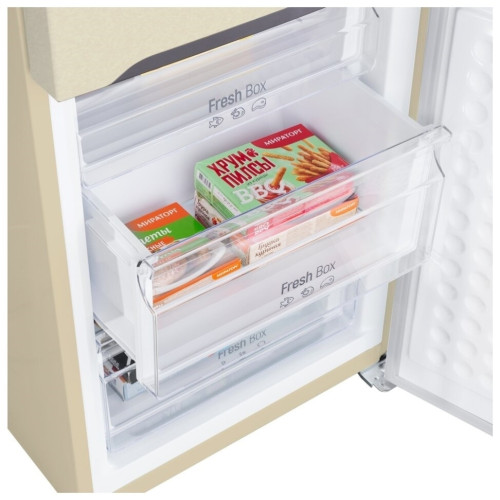 Современный двухкамерный холодильник с сенсорным управлением MFF195NF10 - новые технологии для хранения. Благодаря системе охлаждения TOTAL NO FROST на стенках холодильника не образуется иней, а разморозка происходит автоматически. Сенсорная панель с интеллектуальным управлением. С ней вы сможете установить температуру каждого отсека по отдельности. Холодильник с классом энергопотребления А+. Экономичный холодильник, который тратит мало электроэнергии и экономит ваши средства. Передовые технологии — уровень шума 42дБ. Модель оборудована современным компрессором, который позволяет экономить электроэнергию и снижает уровень шума. Хладагент R600A ""Зеленые"" технологии — абсолютно безвреден для окружающей среды, экономичен и энергоэффективен. Такой хладагент не причиняет вреда озоновому слою. Сигнализация открытой двери. Сигнализация сработает через 2 минуты. Если вы забыли закрыть дверцу, сработает звуковой сигнал, который можно будет отключить, плотно захлопнув дверцу. Функция быстрой заморозки способствует сохранению свежести и витаминов в продуктах, хранящихся в морозильной камере. Режим ""Отпуск"" — экономичное потребление электроэнергии в ваше отсутствие. В холодильном отделении не будет неприятных запахов, а в морозильной камере будет установлена температура на уровне —14С. Функция ""Быстрое охлаждение"" позволит надолго сохранить свежесть большого количества продуктов. Функция ECO обеспечивает длительное сохранение свежести продуктов и активирует работу холодильника в режиме оптимальной энергоэффективности. Блокировка от детей, чтобы предотвратить неправильное функционирование прибора в результате случайного сброса настроек. Металлические фреймы на полках. Если на полке прольётся жидкость, металлический фрейм не даст ей стечь вниз. Винная полка. Удобная полка для хранения бутылок позволит вам охладить напитки перед подачей на стол. Яркая равномерная LED подсветка обеспечивает отличный обзор продуктов внутри холодильника. Полки из прозрачного закаленного стекла легко переставляются и не мешают равномерному освещению внутри холодильника. Внутреннее антибактериальное покрытие предотвратит размножение микробов и образование плесени. Перенавешивание двери позволяет установить дверь как на левую, так и на правую сторону. В данной модели холодильника установлена конденсаторная решетка закрытого типа. Благодаря такой конструкции холодильник можно разместить вплотную к стене. Особенности Современный двухкамерный холодильник высотой 194 см с сенсорным управлением. Корпус шириной 60 см сделан из металла. Внутренняя часть выполнена из антибактериального белого пластика легкой очистки. Предусмотрена возможность перенавешивания двери. В верхней холодильной камере (350 л) находятся: • 4 стеклянные полки • один большой ящик для фруктов и овощей • 4 боковые полки на дверце • решетка для бутылок • 2 лотка для яиц В нижней морозильной (98 л) камере: • 3 выдвижных ящика • емкость для льда Система охлаждения данной модели - «No Frost». Благодаря специальной конструкции испарителя, образование инея на внутренних поверхностях и продуктах практически не происходит. Климатический класс холодильника - ST, N. Это указывает на то, что он выполняет свои функции при температуре окружающей среды от +16°C до +38°С/ от +10°C до +32°С . Низкий урове