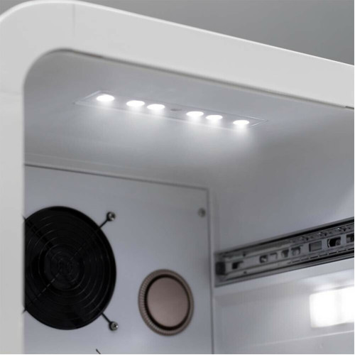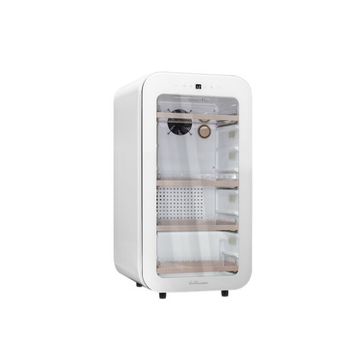 Этот холодильник белого цвета обязательно понравится дизайнерам, так как он имеет современный роскошный вид и идеально впишется практически в любой интерьер. Он подойдёт как для дома, так и для салона красоты, для парикмахерской и для косметического или массажного салона, для фитнесс клуба и оздоровительного центра, для бутика и ресторана. Так как он имеет стеклянную дверь и панорамное освещение, в нём можно не только хранить, но и демонстрировать товары или продукты и использовать его как холодильник-витрину, что несомненно повысит продажи, при использовании его в коммерческих целях. Холодильник имеет небольшую ширину и поэтому эту модель можно отнести к так называемым «узким холодильникам». В отличии от термоэлектрических моделей, данная модель потребляет мало электроэнергии и стабильно поддерживает температуру даже в жарких помещениях. Одним словом- этот холодильник будет идеальным решением для профессионального применения визажистами, косметологами или просто в домашних условиях. Он довольно вместительный и в нём есть возможность размещать большие упаковки. Вот только часть того, что можно хранить в этом современном мини холодильнике со стеклянной дверцей: * косметику (сыворотки, крема, маски, патчи, мисты); * напитки; * продукты; * вино; * фрукты; * детское питание; * шоколад; * различные деликатесы. Модель Meyvel MD71-White имеет ряд преимуществ, таких как: * Современный и стильный внешний вид; * Возможность демонстрации содержимого; * Панорамное освещение; * Широкий температурный диапазон и возможность его регулировки; * Стабильное поддержание температуры в любых условиях; * Большая вместительность; * Сенсорная панель управления; * Удобные выкатные полки полного выдвижения из пластика; * ; * Возможность размещения больших упаковок.