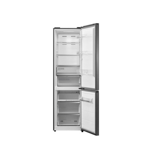 Холодильник Midea MDRB521MIE46OD имеет: * Общий полезный объем 360 литров; * Полезный объем холодильной камеры (вкл. зону свежести) 256 литров; * Полезный объем морозильной камеры 104 литра; Благодаря низкой температуре в морозильной камере объемом 104 л продукты остаются свежими долгое время. Технология разморозки No Frost позволит вам не думать о необходимости ручного размораживания холодильной и морозильной камер. Холодильник Midea MDRB521MIE46ODM с нижним расположением морозильного отсека работает на базе тихого и энергоэффективного инверторного компрессора. Агрегат оснащен двумя перенавешиваемыми дверцами с горизонтальными внутренними ручками, задней металлической стенкой и регулируемыми по высоте ножками. Электронный блок управления в верхней части корпуса позволяет настраивать работу каждой из камер, менять режимы температуры, влажности, устанавливать дополнительные функции. Максимальный уровень шума во время работы прибора не превышает 38 дБ. Холодильный отсек оснащен светодиодной 3D-подсветкой, тремя стеклянными выдвижными полками и зоной свежести, в которой находятся два прозрачных лотка. Две пластиковые полки на дверце предназначены для размещения бутылок и негабаритных продуктов.