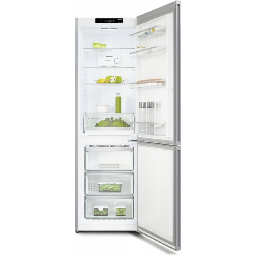 Холодильник Miele KDN4174E el Active поможет организовать хранение ваших продуктов. Конструкция отдельно стоящая. Вы можете разместить прибор в любом удобном месте. Серебристый корпус прекрасно выглядит и хорошо сочетается со всеми интерьерными стилями (от классики до модерна). Общий полезный объем — 305 литров. Места для хранения продуктов достаточно. Дверной упор переставляемый. Это значит, что вы можете установить дверь с любой стороны. Благодаря электронному управлению легко контролировать температуру внутри. На цифровой дисплей выводится вся необходимая информация. Одно из главных преимуществ модели — система NoFrost. Она предотвращает образование инея и льда на стенках. Вам больше не нужно размораживать прибор вручную. Система динамического охлаждения равномерно распределяет холод по всему внутреннему пространству, обеспечивая идеальные условия хранения продуктов. Режим суперзаморозки позволяет быстро заморозить свежие продукты, сохранив их качество и полезные свойства. В приборе имеется 4 вместительные полки из безопасного стекла, а также выдвижной ящик для овощей и фруктов. Вы можете организовать хранение так, как вам удобно. Полки регулируются по высоте. На дверце есть полочка для бутылок. В морозильной камере 3 ящика. Внутри холодильника Миле KDN4174E el Active имеется светодиодная подсветка, которая позволяет найти нужные продукты в любое время суток. Звуковой сигнал предупредит вас о том, что дверь закрыта неплотно. Прибор может работать автономно до 12 часов. Это гарантирует, что в случае сбоя электропитания ваши продукты останутся свежими. В комплект входит лоток для льда. Класс энергоэффективности А+++ означает, что устройство экономно расходует электричество. Прибором можно управлять через мобильное приложение.