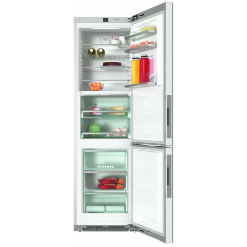 Отдельно стоящий холодильник-морозильник Дверной упор правый, переставляемый Стеклянный фронт Общий объем: 343 л, зона охлаждения: 141 л, зона PerfectFresh: 97, зона замораживания: 101 л Суперохлаждение/cуперзамораживание 2 бокса PerfectFreshPro 3 морозильных бокса Подсветка FlexiLight LED подсветка морозильной камеры Система VarioRoom, ComfortClean, DynaCool, NoFrost Ручка Clik2open Гидравлический доводчик двери SoftClose 3 переставляемые по высоте полочки, 1 - непереставляемая Подставка для яиц, масленка, полочка для бутылок, форма для льда Габариты (В х Ш х Г): 2010 х 600 х 685 мм Страна-производитель: Германия Гарантия 2 года