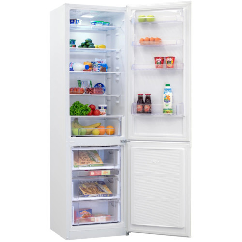 Холодильник полноразмерный с морозильником Nordfrost NRB 154 032 белого цвета – отличная модель с минималистичным дизайном, который отлично подойдет практически под любой интерьер. Общий объем данного прибора довольно внушителен – 353 л. Холодильная камера занимает 238 л, а морозильная – 115 л. Полки внутри холодильника выполнены из прочного закаленного стекла, которое будет очень легко мыть при необходимости. Также имеется яркая и экономичная LED-подсветка. Ручки у данной модели горизонтальные, интегрированные, что позволяет удобно открывать дверцы. Холодильник Nordfrost NRB 154 032 оснащен капельной системой оттаивания и автоматическим управлением. Отметить стоит и класс энергопотребления А+ – один из самых экономичных классов, что позволит значительно сэкономить на электроэнергии. Также немаловажным фактором является ламинированная внутренняя поверхность, имеющая антибактериальное покрытие. Это не только позволит быстро и с комфортом мыть холодильник, но и качественно и правильно хранить продукты.