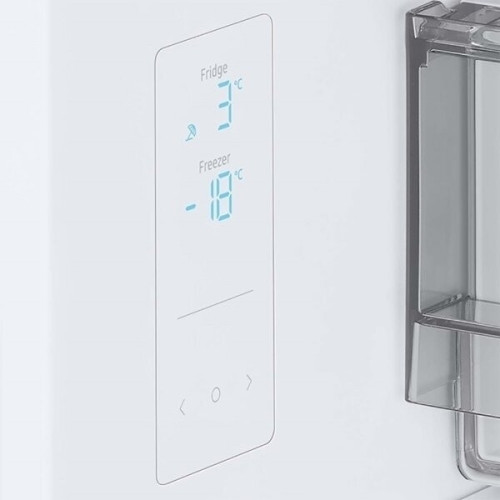 Основные характеристики - Тип: холодильник с морозильной камерой - Тип установки: отдельностоящий - Тип компрессора: инверторный - Количество компрессоров: 1 - Количество камер: 2 - Общий полезный объем: 340 л Холодильная камера - Объем холодильной камеры: 228 л - Регулировка температуры в холодильной камере: да - Установка температуры: 1-7 °C - Количество отделений в холодильной камере: 1 - Размораживание холодильной камеры: No Frost Морозильная камера - Объем морозильной камеры: 112 л - Расположение морозильной камеры: снизу - Размораживание морозильной камеры: No Frost - Количество отделений в морозильной камере: 1 - Мощность замораживания: 12 кг/сутки - Хранение продуктов при отключении питания: 24 ч - Регулировка температуры в морозильной камере: да - Минимальная температура в морозильной камере: -15 °C Зона свежести - Зона свежести: есть - Тип зоны свежести: влажная - Регулировка влажности в зоне сохранения свежести: да Управление - Тип управления: электронное - Способ управления: сенсорный - Расположение панели управления: на корпусе Дисплей - Дисплей: да - Тип дисплея: LED, сенсорный - Вид дисплея: цифровой - Подсветка дисплея: да Индикация - Индикация температуры морозильной камеры: да - Индикация температуры холодильной камеры: да - Индикация включения: да - Индикация режима работы: да - Цвет индикации: голубой - Индикация открытой двери: звуковая, визуальная Электропитание - Класс энергопотребления: A+ - Энергопотребление: 295 кВтч/год - Климатические класс: SN-T - Уровень шума: 35 дБ Защита и безопасность - Тип сигнализации: акустический - Сигнализация об открытой двери: да - Сигнализация о повышении температуры: да Освещение - Освещение холодильной камеры: да - Тип освещения: светодиодное (LED) - Количество ламп освещения: 1 Функции и возможности - Суперзаморозка: да - Независимая регулировка температуры в камерах: да - Режим «Отпуск»: да - Автоматическое отключение: да - Максимальное время автоматического отключения: 18 ч - Дополнительная информация: функция быстрого охлаждения, технология SpaceMax (тонкие стенки с термоизоляцией), тип охлаждения All Around Cooling (равномерное охлаждение всех уровней камеры), панель Metal Cooling (дольше удерживает холод и быстро восстанавливает нужную температуру для свежести продуктов) Особенности конструкции - Количество дверей: 2 - Открытие дверцы: направо - Перенавешиваемые двери: да Контейнеры и полки - Количество полок в холод.