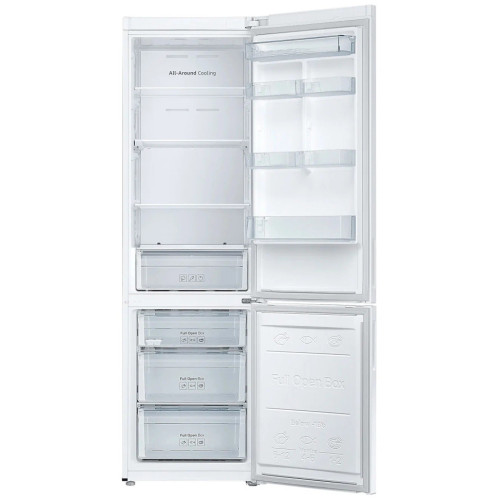 Храните больше продуктов с помощью технологии SpaceMax, которая позволяет добиться большего полезного внутреннего объема, благодаря тонким стенкам с теплоизоляцией, при этом не снижая энергоэффективность холодильника. Настройте пространство в двери холодильника с помощью 4 дверных съемных полок, которые позволяют легко приспособить их для хранения ёмкостей самых разных размеров. Возможность регулировать их по высоте позволяет использовать пространство по максимуму. Ящик в моделях серии RB5000A может выдвигаться из морозильной камеры на всю свою глубину, так что вы теперь сможете хранить большие продукты и вынимать их с легкостью. Верхнее LED освещение в моделях серии RB5000A ярко освещает интерьер холодильника. Цифровой инверторный компрессор автоматически регулирует скорость работы в зависимости от выбора одного из семи уровней мощности охлаждения. В результате холодильник потребляет меньше электроэнергии, работает тихо и служит долго. Технология No Frost предотвращает образование наледи на стенках холодильника и обеспечивает поддержание постоянной температуры в каждом уголке камеры. Кроме того, эта система ускоряет охлаждение рабочих камер, благодаря чему уменьшается нагрузка на систему охлаждения.