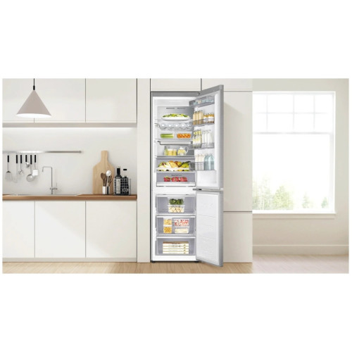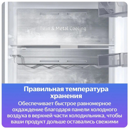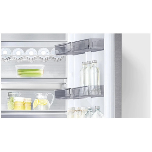 Система Twin Cooling Plus оптимизирует температуру, гарантируя равномерное охлаждение и влажность, а благодаря независимому охлаждению в холодильной и морозильной камерах запахи не смешиваются, а продукты дольше остаются свежими.Система Twin Cooling Plus оптимизирует температуру, гарантируя равномерное охлаждение и влажность, а благодаря независимому охлаждению в холодильной и морозильной камерах запахи не смешиваются, а продукты дольше остаются свежими. Сохраняйте свежесть продуктов, благодаря точному и равномерному распределению охлажденного воздуха через множество вентиляционных отверстий поддерживается постоянная температура в каждом уголке рабочей камеры. Используйте пространство как вам захочется с помощью CoolSelect Plus. Одним касанием можно настроить температуру для разного типа продуктов, Холодильник (2?), Зона свежести (-1?), Мягкая заморозка (-5?) или Заморозка (-15-23?) в зависимости от потребности. Воспользуйтесь опцией быстрого охлаждения, которая помогает быстрее охладить любые продукты. Быстрая заморозка за счет интенсивного потока холодного воздуха позволяет быстрее производить лед и осуществлять глубокую заморозку. Металическая панель Metal Cooling на задней стенке холодильника дает дополнительный источник холода и делает внутреннее пространство еще более стильным. Благодаря действию панели даже при частом открывании дверцы холод в камере удерживается дольше, а оптимальная температура восстанавливается быстрее. Зона свежести (Fresh Zone) представляет собой выдвижной ящик, в котором создаются идеальные условия для хранения мяса и рыбы, поскольку в нем поддерживается оптимальная температура, и эти продукты долго сохраняются в наилучшем виде. Инверторный компрессор автоматически регулирует скорость работы в зависимости от выбора одного из семи уровней мощности охлаждения. В результате холодильник потребляет меньше электроэнергии, работает тихо и служит долго. Технология No Frost предотвращает образование наледи на стенках холодильника и обеспечивает поддержание постоянной температуры в каждом уголке камеры. Кроме того, эта система почти в два раза ускоряет охлаждение рабочих камер, благодаря чему уменьшаются затраты электроэнергии на охлаждение. Настройте пространство в двери холодильника с помощью 4 дверных съемных полок, которые позволяют легко приспособить их для хранения ёмкостей самых разных размеров. Возможность регулировать их по высоте позволяет использовать пространство по максимуму.