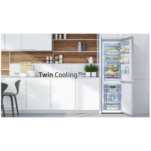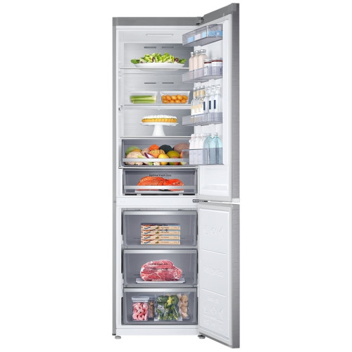 Оптимальная влажность Система Twin Cooling Plus™ оптимизирует температуру, гарантируя равномерное охлаждение и влажность, а благодаря независимому охлаждению в холодильной и морозильной камерах запахи не смешиваются, а продукты дольше остаются свежими. Объём больше, размер тот же Храните больше продуктов с помощью технологии SpaceMax™, которая позволяет добиться большего полезного внутреннего объема, благодаря тонким стенкам с теплоизоляцией, при этом не снижая энергоэффективность холодильника. Совершенное охлаждение Сохраняйте свежесть продуктов, благодаря точному и равномерному распределению охлажденного воздуха через множество вентиляционных отверстий поддерживается постоянная температура в каждом уголке рабочей камеры. Современный минималистичный дизайн Безупречная стальная отделка элементов в сочетании с голубой подсветкой ручки добавляют элегантности и сочетаются с любым дизайном современной кухни. Гибкая настройка одним касанием Используйте пространство как вам захочется с помощью CoolSelect Plus. Одним касанием можно настроить температуру для разного типа продуктов, Холодильник (2?), Зона свежести (-1?), Мягкая заморозка (-5?) или Заморозка (-15~-23?) в зависимости от потребности. Быстрое охлаждение и заморозка Воспользуйтесь опцией быстрого охлаждения, которая помогает быстрее охладить любые продукты. Быстрая заморозка за счет интенсивного потока холодного воздуха позволяет быстрее производить лед и осуществлять глубокую заморозку.