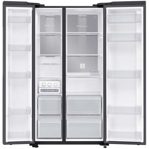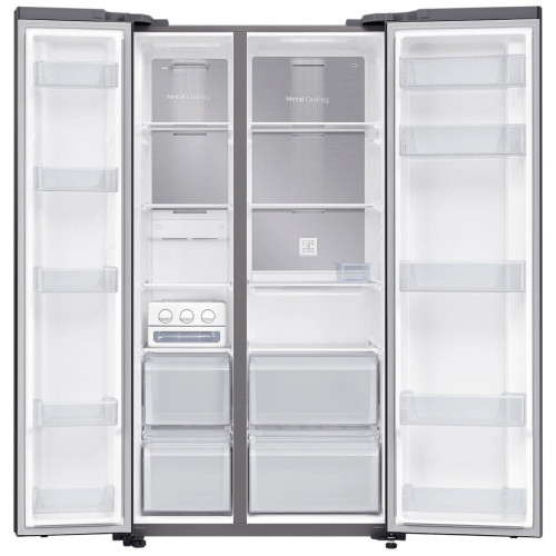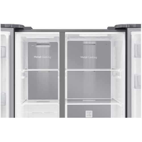 В холодильник невероятного объема поместится больше продуктов. Уникальная технология SpaceMax™ позволяет увеличить полезный объем за счет уменьшения толщины стенок, внутри которых теплоизоляция с улучшенными свойствами. Поэтому холодильник обладает увеличенной емкостью без увеличения внешних габаритов. Многопоточная система охлаждения All-Around Cooling Продукты хорошо охлаждются на всех полках и карманах. Система равномерного охлаждения непрерывно контролирует температуру в разных уголках камеры и равномерно распределяет холодный воздух, благодаря чему продукты долго сохраняют свою свежесть. Инверторный компрессор Инверторный компрессор Samsung значительно экономит энергопотребление. А его надежность подтверждается сертификацией на 21 год непрерывной эксплуатации*. Инверторный компрессор автоматически регулирует скорость работы в зависимости от требуемой степени охлаждения. Это сокращает износ и шум. На инверторный компрессор предоставляется гарантия на 10 лет. Цельный дизайн Придайте своему дому стильный современный вид с оттенком минимализма. Плоские дверцы с утопленными ручками придают холодильнику дополнительную элегантность.