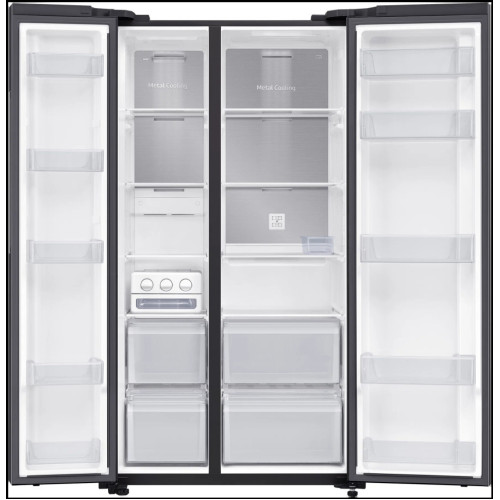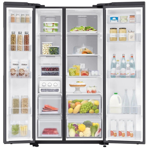 В холодильник невероятного объема поместится больше продуктов. Уникальная технология SpaceMax™ позволяет увеличить полезный объем за счет уменьшения толщины стенок, внутри которых теплоизоляция с улучшенными свойствами. Поэтому холодильник обладает увеличенной емкостью без увеличения внешних габаритов. Многопоточная система охлаждения All-Around Cooling Продукты хорошо охлаждются на всех полках и карманах. Система равномерного охлаждения непрерывно контролирует температуру в разных уголках камеры и равномерно распределяет холодный воздух, благодаря чему продукты долго сохраняют свою свежесть. Инверторный компрессор Инверторный компрессор Samsung значительно экономит энергопотребление. А его надежность подтверждается сертификацией на 21 год непрерывной эксплуатации*. Инверторный компрессор автоматически регулирует скорость работы в зависимости от требуемой степени охлаждения. Это сокращает износ и шум. На инверторный компрессор предоставляется гарантия на 10 лет. Цельный дизайн Придайте своему дому стильный современный вид с оттенком минимализма. Плоские дверцы с утопленными ручками придают холодильнику дополнительную элегантность.