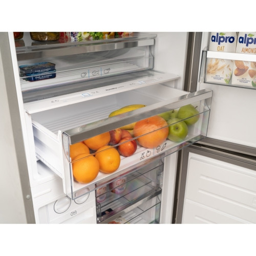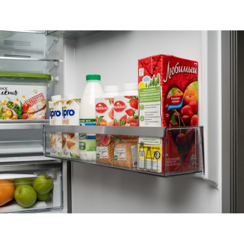Система разморозки холодильника – NO FROST Multi Cooling, поэтому благодаря этой особой микро-вентиляционной технологии температура внутри холодильной камеры распределяется равномерно. Продукты хранятся дольше, а потребление электроэнергии заметно снижается. Никакой наледи и конденсата, без ручной разморозки. Встроенный сенсорный LED дисплей поможет одним нажатием выбрать нужный температурный режим. Благодаря режиму Holiday и ECO можно экономить электроэнергию во время отпуска или командировки. Температура морозильной и холодильной камер будут установлены на оптимальный уровень. На встроенной ручке со специальным матовым покрытием не остаются отпечатки пальцев. Угол открытия дверей холодильника 90° благодаря технологии Zero Clearance позволяет установить холодильник вплотную к стене. При этом ящики и полки полностью вынимаются из холодильника, дверца не мешает. Ящики в морозильной камере глубокие и прочные, дают возможность замораживать продукты большого объёма. Звуковое оповещение об открытой дверце предотвращает проблемы в системе охлаждения.