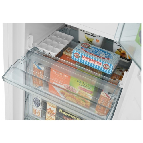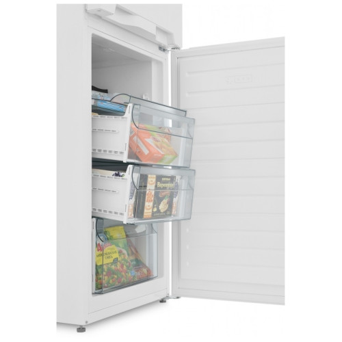 Холодильник Schaub Lorenz SLU S262W4M с системой разморозки «FROST FREE». В холодильной камере предусмотрена капельная система разморозки, а в морозильном отделении система разморозки NO FROST. Данная система обеспечивает равномерное распределение воздуха по камере холодильника. За счёт этого не возникает зон с резкими перепадами температуры, из-за которых конденсируется и замерзает влага. Благодаря циркуляции воздуха, после закрытия двери холодильника, заданная температура в камере восстанавливается быстрее, чем в обычных агрегатах. Холодильник класса «А+» энергопотреблением 254 кВт/ч в год имеет функцию LED освещения. Благодаря минимальному выделению тепла во время работы LED-лампы не нагревают внутреннее пространство и содержимое отделения. Это позволяет сохранять продукты свежими на более длительное время. Вместительная двухкамерная модель Schaub Lorenz SLU S262W4M общим объемом 245л. Скорость замораживания продуктов составляет 4кг/24 часа. Холодильная камера имеет 4 стеклянные полки, большой ящик для фруктов и овощей, 3 прозрачные полки на дверце. Морозильная камера состоит из 4-х ящиков. В комплекте идет форма для яиц, лоток для льда. Модель классического белого холодильника дополнена стильной встроенной ручкой EDGE, придающей устройству эстетический внешний вид.