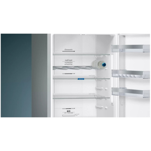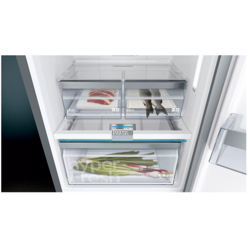 Элегантный встроенный электронный дисплей украшает холодильник и помогает держать все под контролем. Светодиодная подсветка LED ярко и равномерно освещает кабинет холодильника. Долговечные светодиодные лампы расположены в боковых стенках или сверху и равномерно освещают кабинет холодильника. Многопоточная система охлаждения multiAirflow обеспечивает равномерное распределение воздуха и охлаждение на всех уровнях холодильника. Теплые продукты охлаждаются быстрее, а исходная свежесть и качество продукта сохраняются лучше. Технология noFrost защищает от образования инея и избавит вас от необходимости размораживать холодильник. Технология noFrost: никакой разморозки. С помощью специальной системы вентиляции влага отводится из морозильного отделения в специально предназначенный для этой цели отсек вне морозильной камеры и испаряется. В результате морозильную камеру не надо размораживать, потому что в ней не образуется лед, а замороженные продукты не покрываются инеем. Функция superFreezing понижает температуру на заданный промежуток времени, чтобы быстрее заморозить только что добавленные продукты.