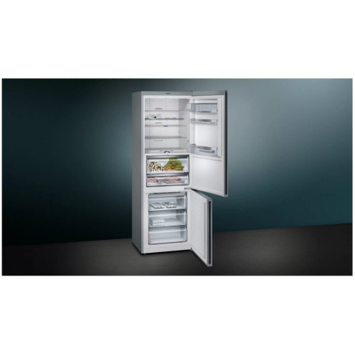 Двухкамерный холодильник Siemens KG49NSB2AR White с герметичной зоной свежести hyperFresh premium 0° сохраняет свежесть продуктов до 3 раз дольше. В отделении для овощей и фруктов предусмотрен переключатель для регулировки влажности, а в зоне для овощей и рыбы можно менять температуру на цифровом дисплее. Разморозка этой модели не требуется: технология noFrost обеспечивает выведение лишней влаги из морозильника в отдельный отсек, где она испаряется. В результате на стенках холодильника и продуктах не образуется лед и иней. В этой модели также предусмотрен специальный подвес из нержавеющей стали для безопасного хранения бутылок и банок любых размеров. Если вы загрузили в морозильник много свежих продуктов и не хотите, чтобы изменение температуры повлияло на замороженные ранее продукты, достаточно на 24 часа включить режим суперзамораживания: температура начнет понижаться, пока не достигнет нужного для глубокой заморозки уровня. Аналогичным образом в холодильной камере Siemens KG49NSB2AR White можно включить суперохлаждение, которое понизит общую температуру до +2 °C, чтобы на ранее охлажденные продукты не повлияла загрузка новых.