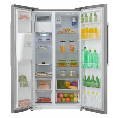 Холодильник Toshiba GR-RS508WE-PMJ - это невероятно вместительная модель, принадлежащая к премиальному классу Side-by-Side. В вашем распоряжении две камеры с общим объёмом 490 литров. Холодильная камера позволит разместить разнообразные продукты, которых хватит на большую семью. Для бережного хранения фруктов и овощей предусмотрена специальная зона свежести. Морозильная камера разделена на два отделения, что поможет вам распределить продукты наиболее компактно. Каждая их двух дверей оборудована дополнительными полками.Обе камеры оснащены системой размораживания NoFrost, которая препятствует образованию инея. Вам доступны также функции суперохлаждения и суперзаморозки. Отправляясь в путешествие, настройте режим Отпуск и не переживайте за сохранность ваших продуктов. Охладите любимый напиток в любое время: для этого в одной из дверей предусмотрен генератор льда. Инверторный компрессор позволяет устройству работать более плавно и эффективно. Вместе с тем, он снижает шум во время работы до комфортного уровня 43 дБ и оптимизирует энергопотребление. Для контроля температуры и внесения всех настроек в вашем распоряжении яркий дисплей. Элегантный серебристый корпус изящно впишется в интерьер любой кухни.