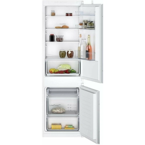 Двухкамерный встраиваемый холодильник Цвет: белый Размер: 177,2 х 54,1 х 54,8 см 1 компрессор Общий объем 267 л. Объем холодильной камеры 183 л. Объем морозильной камеры 84 л. Без системы No Frost Без Управление электронное Зона свежести Fresh Safe 1 Мощность замораживания 4 кг/сут Расположение морозильной камеры снизу Перенавешиваемые двери Сигнализация открытой двери Класс энергоэффективности: F Среднее потребление энергии: 286 кВтч/год Уровень шума: 39 дБ(A) Класс шумности: C Предохранитель: 10 А Напряжение: 220-240 В Частота: 50 Гц Длина соединительного кабеля: 230 см Хранение при отключении питания: 9 ч