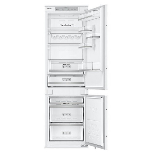 Полный полезный объем: 267 л. Объем брутто (Общий): 276 л. Полезный объем (морозильная камера): 72 л. Объем брутто (Морозильная камера): 80 л. Полезный объем (холодильная камера): 195 л. Объем брутто (Холодильная камера): 196 л. Винная полка: Да Внутреннее LED освещение: LED-подсветка Количество полок (всех): 3 Количество дверных карманов: 5 Материал полок: Закаленное стекло Количество ящиков для овощей и фруктов: 1 Цвет: Белый Ширина: 540 мм. Глубина корпуса с учётом дверной ручкой: 550 мм. Вес без упаковки: 62 кг. Высота корпуса с учетом петель: 1 775 мм. Количество ящиков (для фруктов и овощей): 2 Количество полок: 1 Класс энергоэффективности: A+ Мощность заморозки: 9 кг/24ч Уровень шума: 37 дБа. Климатический класс: N, SN, ST, T Режим "Отпуск": Да Энергопотребление: 291 кВт⋅ч/год Система No Frost (защита от наледи): Да Тип охлаждения (система): Система Twin Cooling (2 независимых контура охлаждения) Звуковой сигнал при открытой двери: Да Компрессор: Инверторный компрессор Хладагент: R-600a Перенавешиваемые дверцы: Да Тип холодильника: Встраиваемый; Морозильная камера снизу