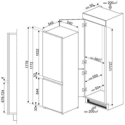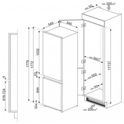 Встраиваемый холодильник Smeg C8173N1F