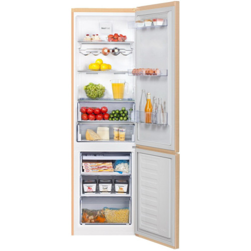 Двухкамерный холодильник Beko RCNK 365E20ZSB. Двухкамерный холодильник с нижним расположением морозильной камеры Особенности: Технология NoFrost Dual Cooling Предотвращение образования льда и смешивания запахов. С системой NoFrost не нужно регулярно размораживать холодильник. А инновационная система двухконтурного охлаждения Dual Cooling позаботится, чтобы запахи в холодильной и морозильной камерах не смешивались. Режим "Отпуск" "Умное" распределение электроэнергии. На время вашего отсутствия вы можете перевести холодильник в режим "Отпуск" и отключить холодильное отделение. Это позволит сэкономить на счете за электричество и в тоже время не беспокоиться за сохранность продуктов в морозильной камере. Активный ионизатор Нейтрализация бактерий, вирусов и аллергенов. Ионизированные частицы нейтрализуют бактерии, вирусы и аллергены даже в замкнутом пространстве внутри холодильника. Благодаря этому в холодильной камере всегда сохраняется запах свежести и продукты могут храниться дольше. Технология EverFresh+ Увеличение длительности хранения продуктов. Отделение для овощей и фруктов, спроектированное по новой технологии EverFresh+, позволяет продлить свежесть продуктов на 30 дней. Влажность воздуха регулируется специальными каналами и самой конструкцией ящика, так что теперь вы можете закупить намного больше овощей и не беспокоиться о сроке их хранения. Общие данные: Размеры: высота (см): 186 ширина (см): 59,5 глубина (см): 65 Общий объем/ Полезный объем: Холодильника (л): 365/320 Холодильной камеры (вкл. зону свежести) (л): -/220 Морозильной камеры (л): -/100 Зона свежести: 25 л Тип управления: электронный Класс энергопотребления: A+ Климатический класс: SN-T (от +10°С до +43°С) Количество компрессоров: 1 Годовое потребление энергии: 337 кВтч Цвет: бежевый Холодильное отделение: Полки из закаленного стекла Зона свежести 0-3°C Система No Frost (Frost Free, Ноу Фрост) Светодиодная подсветка Подставка для яиц Активный ионизатор Хромированная полка для бутылок Отделение для овощей и фруктов Everfresh Морозильное отделение: Система No Frost (Frost Free, Ноу Фрост) Время сохранения температуры без электричества: 21 ч Мощность замораживания: 6 кг/24 ч Камера быстрой заморозки Лоток для пельменей Дополнительная информация: Дисплей Уровень шума: 40 дБ Перенавешиваемые двери Звуковое оповещение при открытой двери Режим «Отпуск» Встроенная ручка