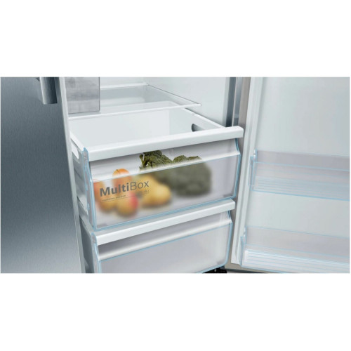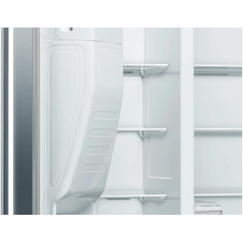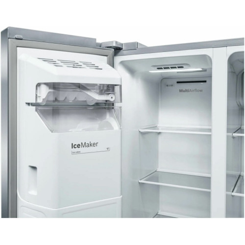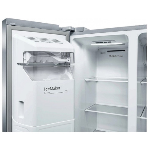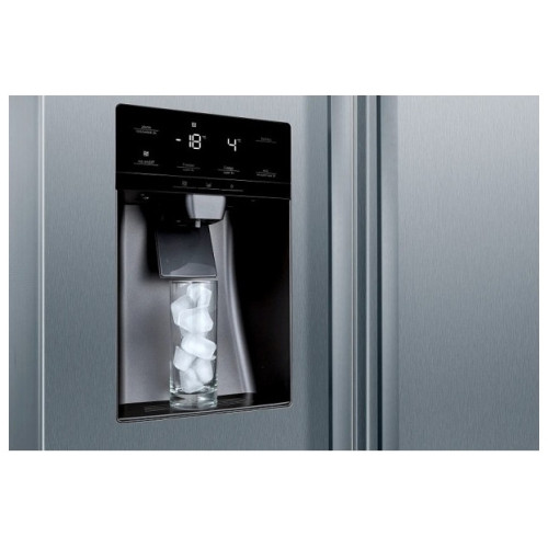 Общие данные: Размеры: высота (см): 178,7 ширина (см): 90,8 глубина (см): 70,7 Общий объем/ Полезный объем: Холодильника (л): 610/533 Холодильной камеры (л): 386/368 Морозильной камеры (л): 224/165 Тип управления: электронный Класс энергопотребления: A Климатический класс: SN-T (от 10С до 43С) Количество компрессоров: 1 Годовое потребление энергии: 343 кВтч Цвет: двери - нержавеющая сталь EasyClean (не оставляющая отпечатки пальцев), корпус - серый Холодильное отделение: Полки из ударопрочного стекла Система многопоточного охлаждения Multi-Airflow Система No Frost (Frost Free, Ноу Фрост) Светодиодное освещение Суперохлаждение Ящики для овощей и фруктов: 2 Лоток для яиц Морозильное отделение: Система No Frost (Frost Free, Ноу Фрост) Длительность хранения при отключении электроэнергии: 8 ч Мощность замораживания: 13 кг/сутки Светодиодное освещение Суперзаморозка с автоматическим отключением Встроенный ледогенератор (с функциями подачи льда в кубиках, колотого льда и охлажденной воды) Полки из ударопрочного стекла 2 ящика Дополнительная информация: Сенсорное управление Уровень шума: 42 дБ Раздельный контроль температуры для холодильной и морозильной секций Оптическая и акустическая система предупреждения об открытой двери