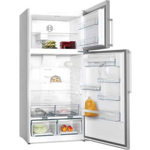 Холодильник NoFrost Bosch KDD86AI304 Perfect Fit. Идеально установите ваш холодильник. Холодильники VitaFresh могут быть установлены на кухне вплотную к мебели и стенам, без зазоров сзади и сбоку. Кроме того, дверца холодильника открывается на 90 градусов, не требуя дополнительного пространства, при этом ящики, находящиеся внутри, легко вынимаются. Легкое приготовление льда: iceTwister Наслаждайтесь своим собственнм мини-баром. С iceTwister приготовить напитки со льдом проще простого. VitaFresh PLUS. До двух раз дольше сохраняет свежесть продуктов Мало купить продукты, нужно еще сохранить их свежесть. Отделения VitaFresh помогают дольше сохранить свежими ваши продукты. В ящике можно установить один из двух уровней влажности для оптимального сохранения полезных свойств продуктов. Здоровая пища каждый день! Теперь это просто. NoFrost: полное отсутствие льда NoFrost: скажите нет размораживанию благодаря идеальной технологии, предотвращающей образование льда и инея - сэкономьте время и усилия. Забудьте про разморозку холодильника. Вместо разморозки лучше полакомиться мороженым. MultiAirflow: свежесть с верхней до нижней полки Система MultiAirflow с вентилятором усиливает циркуляцию воздуха внутри холодильника и поддерживает равномерную температуру и влажность сверху донизу. Колебания температуры минимальны, сокращается время охлаждения – это помогает сохранить свежесть и вкус продуктов дольше. Фильтр AirFresh: пусть ваш холодильник пахнет свежестью Фильтр Airfresh с антибактериальной защитой antiBacteria активно нейтрализует запахи внутри холодильника и отфильтровывает бактерии. Он встроен в систему вентиляции и препятствует смешиванию запахов, чтобы продукты сохраняли свой естественный вкус. Полки EasyAccess: удобно класть и доставать продукты Полки EasyAccess из закаленного ударопрочного стекла очень удобны в использовании благодаря тому, что они плавно выдвигаются даже при полной загрузке, чтобы вы могли с легкостью достать продукты из самого дальнего уголка холодильника. FreshSense: климат контроль Вашего холодильника Постоянная температура в камере холодильника - решающий фактор в достижении длительного срока хранения продуктов. Датчики FreshSense постоянно контролируют и поддерживают температуру в холодильном и морозильном отделениях. Таким образом продукты будут находиться в идеальном состоянии, когда Вы захотите их приготовить. Надёжный заслон тёплому воздуху Функция SuperCool обеспечивает более быстрое охлаждение только что поставленных продуктов. Температура понижается нажатием кнопки. Для экономии функция автоматически выключается примерно через шесть часов. Функция Supercool сохраняет свежесть старых и новых продуктов. SuperFreezing защищает замороженные продукты от размораживания