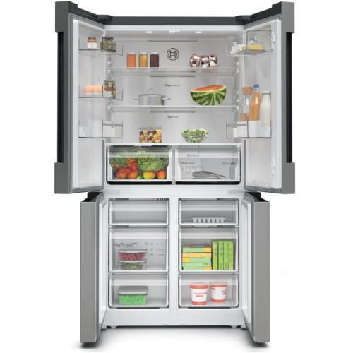 Многокамерный холодильник Bosch KFN96VPEA Общие данные: Размеры: высота (см): 183 ширина (см): 90,5 глубина (см): 73,1 Общий объем/ Полезный объем: Холодильника (л): 605/- Холодильной камеры (л): 405/- Морозильной камеры (л): 200/- Тип управления: электронный Класс энергопотребления: A++ Климатический класс: SN-T (от +10°С до +43°С) Количество компрессоров: 1 Годовое потребление энергии: 333 кВтч Цвет: нержавеющая сталь (с защитой от отпечатков пальцев) Холодильное отделение: Полки из ударопрочного стекла Зона свежести VitaFresh Plus Система No Frost (Frost Free, Ноу Фрост) Светодиодное освещение Суперохлаждение Ящик для овощей и фруктов Морозильное отделение: Система No Frost (Frost Free, Ноу Фрост) Длительность хранения при отключении электроэнергии: 15 ч Суперзаморозка 6 ящиков Дополнительная информация: Сенсорное управление Уровень шума: 38 дБ Индикаторы температуры Сигнализация открытой двери Сигнализация неисправности