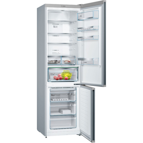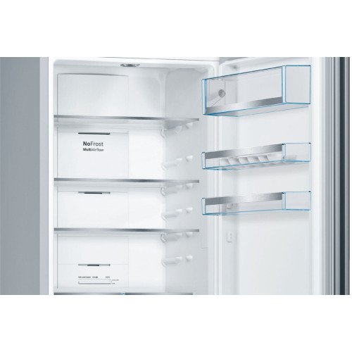 Двухкамерный холодильник Bosch KGN39LB30U Общие данные: Размеры: высота (см): 203 ширина (см): 60 глубина (см): 66 Общий объем/ Полезный объем: Холодильника (л): 400/366 Холодильной камеры (л): 290/- Морозильной камеры (л): 110/- Тип управления: электронный Класс энергопотребления: A++ Климатический класс: SN-T (от +10°С до +43°С) Количество компрессоров: 1 Годовое потребление энергии: 273 кВтч Цвет: черное стекло Холодильное отделение: Полки из закаленного стекла Зона свежести VitaFresh Система многопоточного охлаждения MultiAirflow: постоянная циркуляция воздуха на всех уровнях – дольше сохраняет свежесть продуктов. Система Nо Frost (Frost Free, Ноу Фрост) Светодиодное освещение Суперохлаждение Ящик для овощей и фруктов VitaFresh 3 лотка для яиц Морозильное отделение: Система Nо Frost (Frost Free, Ноу Фрост) Время сохранения холода при отключении электроэнергии: 16 ч Функция суперзамораживания 3 отделения 2 аккумулятора холода 1 лоток для кубиков льда с крышкой Дополнительная информация: Сигнал открытой дверцы Сигнал предупреждения о неисправности Дверной упор справа, перенавешиваемый Уровень шума: 39 дБ