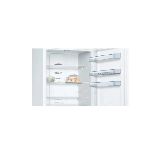 Холодильник Bosch KGN56VWF0N, Белый Светодиодное освещение, которое бесперебойно работает на протяжении всего срока службы устройства, обеспечивает равномерное освещение внутри холодильника и не дает бликов. VarioZone: больше гибкости благодаря регулируемым полкам и ящикам. BigBox: дополнительное место для замороженных крупных продуктов. Благодаря выдвижным стеклянным полкам ко всему в холодильнике легко получить доступ, продукты можно легко взять и положить обратно. Функция Super Cooling быстро охлаждает продукты, которые вы хотите хранить, гарантируя, что их пищевая ценность не уменьшится.
