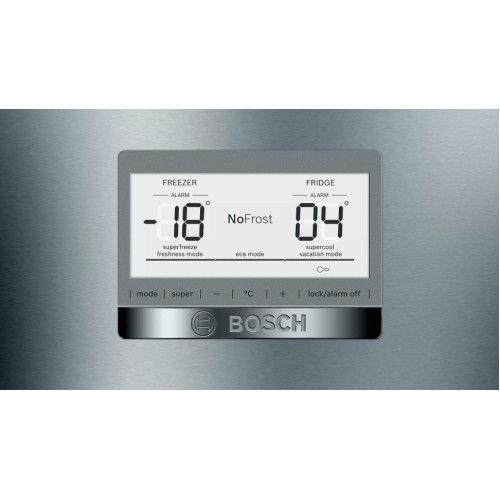 высота: 186 см, морозильная камера: снизу, размораживание морозильной камеры: No Frost, размораживание холодильной камеры: No Frost, количество камер: 2, класс энергопотребления: A++, ширина: 75 см, глубина: 80 см, общий объем: 521 л, объем холодильной камеры: 406 л, объем морозильной камеры: 115 л, зона свежести, количество компрессоров: 1, особенности конструкции: дисплей, перевешиваемые двери, дополнительные функции: индикация температуры, режимы: суперзаморозка, суперохлаждение, уровень шума: 42 дБ