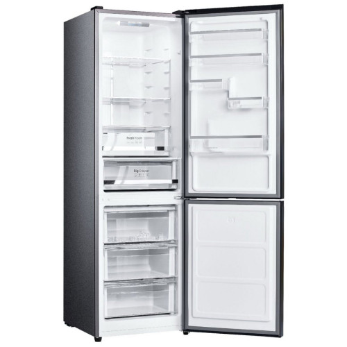 Двухкамерный холодильник Evelux FS 2291 DX Двухкамерный холодильник с нижним расположением морозильной камеры Общие данные: Размеры: высота (см): 195 ширина (см): 59,4 глубина (см): 64,5 Общий объем/ Полезный объем: Холодильника (л): 344/- Холодильной камеры (вкл. зону свежести) (л): 235/- Морозильной камеры (л): 109/- Тип управления: электронный Класс энергопотребления: A+ Климатический класс: SN-T (от +10°С до +43°С) Количество компрессоров: 1 Годовое потребление энергии: 324 кВтч Цвет: нержавеющая сталь Холодильное отделение: Полки из закаленного стекла Динамическое охлаждение Зона свежести Система No Frost (Frost Free, Ноу Фрост) LED подсветка Интенсивное охлаждение Super Cool Контейнер для овощей Подставка для яиц Морозильное отделение: Система No Frost (Frost Free, Ноу Фрост) Длительность сохранения холода при отключении электроэнергии (ч): 13 Мощность замораживания (кг/сут): 9 Интенсивная заморозка 3 ящика Лоток для льда Дополнительная информация: Управление: Сенсорное Smart Touch Slider Дисплей цифровой Уровень шума (дБ): 41 Материал фронтальной поверхности двери: Металл Тип ручки: Скрытая Режим Отпуск Режим Smart Eco Регулируемые ножки Хладагент: R600A Перенавешиваемые двери