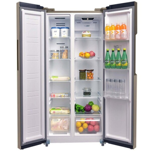 Холодильник Ginzzu NFK-420 SbS золотистого цвета имеет массу преимуществ. Он красивый и производительный. Инверторный компрессор - тихий, экономичный и долговечный. Общий полезный объем составляет 400 литров. Есть система NoFrost. Вы навсегда будете избавлены от необходимости размораживать отделение. Присутствует электронное управление. Минимальная температура в морозилке -23. Полки сделаны из закаленного стекла.