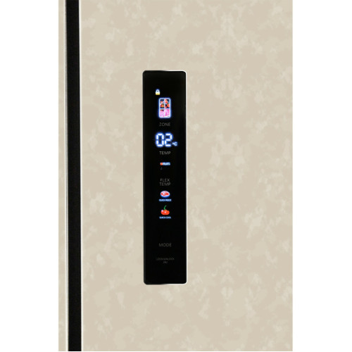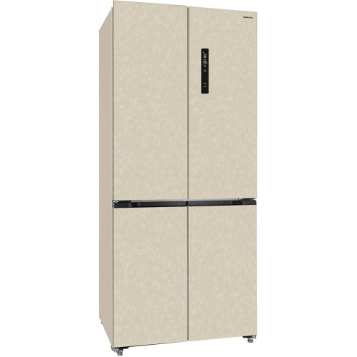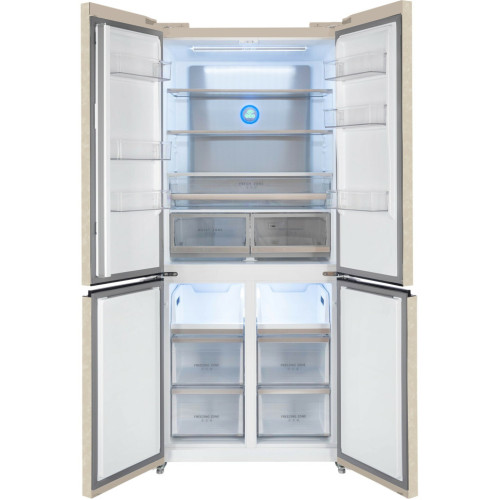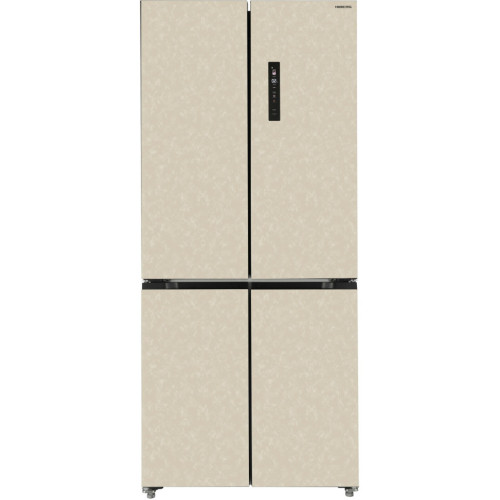 Общий объем 526 л * Полезный объем 501 л * Объем холодильной камеры 327 л * Объем морозильной камеры 174 л * Объем зоны свежести 30 л * Объем настраиваемой камеры 15 л Четырехдверный холодильник HIBERG RFQ-600DX NFYm в эффектном цвете «бежевый мрамор» и возможностью встраивания идеально впишется в кухонный гарнитур, создаст стильную и уютную атмосферу. Холодильник с общим объемом 526 литров предназначен для хранения большого количества продуктов и напитков в частных и загородных домах, просторных квартирах и современных крупных офисах. Благодаря глубине холодильника 60 см его можно свободно встроить в кухонный гарнитур, обеспечив минимальное расстояние до кухонных шкафов всего в 5 мм. С системой нижнего отвода тепла стенки соседних шкафов не будут нагреваться. С помощью специальных дверных петель и обновленной конструкции двери модели открываются на 90 градусов, что обеспечивает удобный доступ к продуктам. Инверторный компрессор обеспечивает низкий уровень шума до 37 дБ с минимальным уровнем энергопотребления, что подтверждено присвоенным высоким классом энергоэффективности А++. Технологии: Холодильник оснащен системой размораживания Total No Frost, которая с помощью равномерного распределения циркулирующего холодного воздуха препятствует образованию наледи и конденсата на стенках рабочих камер, облегчает уход и навсегда освобождает пользователя от ручного размораживания. С многопоточной системой охлаждения Multi Air Flow в холодильном отделении поддерживается стабильная температура на всех уровнях, а необходимая степень охлаждения достигается намного быстрее и продукты дольше остаются свежими. Технология Metal Cooling дает дополнительный источник холода и быстро восстанавливает температуру внутри рабочих камер после открытия двери. Мембранная технология автоматического поддержания уровня влажности до 90% в ящиках холодильной камеры улучшает условия хранения овощей, фруктов и зелени. Продукты дольше сохраняют все полезные свойства и естественную свежесть. Уровень влажности можно регулировать с помощью специального бегунка, расположенного рядом с ящиком. Панель управления и режимы: Холодильник оснащен электронной панелью управления с цветным дисплеем, на котором можно установить точную температуру или выбрать необходимый режим. Режимы «Суперзаморозка» до -28°С и «Суперохлаждение» до +2°С обеспечивают быстрое замораживание и охлаждение продуктов в морозильной и холодильной камерах и, далее, поддерживают оптимальную температуру для хранения. В интеллектуальном режиме управления температура внутри холодильника настраивается автоматически: температура для холодильной камеры устанавливается +2°С, а для морозильной -18°С. Расположенный в холодильной камере ящик с гибкой настройкой температуры позволяет выбрать один из предустановленных режимов для напитков, мяса или фруктов: -4°С, 0°С и +4°С. Сигнализация открытой двери своевременно оповестит Вас о возможной потере холода, а функция «Защита от детей» поможет Вам не беспокоиться о безопасности маленьких домочадцев. Эргономика внутреннего пространства: * большой LED-светильник с эстетически привлекательным дизайном; * полки внутри холодильной и морозильной камеры выполнены из закаленного стекла и имеют пружинный замок – стабильная структура с премиальным внешним видом; * ящики в холодил