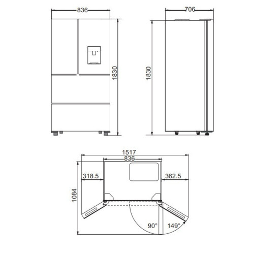 | Габариты (ШхВхГ) | 83,6x183x70,6 |