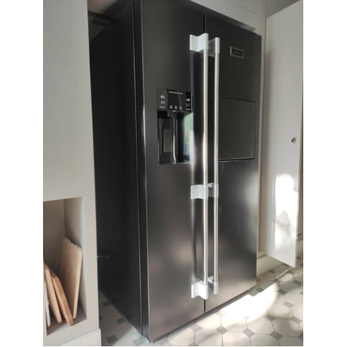 Холодильник Side-by-side Kaiser KS 90500 RS Особенности: Категория: Холодильник Тип холодильника: Холодильник Side-By-Side Дизайн: AvantgardePRO Тип установки: Отдельно стоящий прибор Количество дверей: 2 Количество компрессоров: 1 Инверторный двигатель Тип управления: Intelligent System Дисплей Диспенсер для воды VitaminPLUS Garden Box Freeze Box Мульти-Бар Super Frost Машина для льда Звуковой индикация Работа в отпуске Холодильное отделение: Объем холодильной камеры: 385 л Дверная полка с крышкой Лоток для яиц Устройство Cloud Fresh Освещение Суперохлаждение Система разморозки холодильной камеры No Frost Морозильное отделение: Объем морозильной камеры: 171 л Суперзаморозка Мощность замораживания: 12 кг/сут Температура в морозильной камере: -18 °C и ниже Система разморозки морозильной камеры No Frost Автономное сохранение холода: 30 ч Ящики: 2 Freeze Box Полки SafetyGlass: 4 Дверные полки: 5 полок LogicSpace Характеристики: Общий объем брутто: 556 л Класс энергопотребления: Е Энергопотребление: 0.83 кВтч/год Климатический класс: SN / N / ST / T Тип хладагента: R600a (изобутан) Уровень шума: до 50 Дб Габариты (ВхШхГ): 1780х911х706 мм Размеры упаковки (ВхШхГ): 1845х968х750 мм Вес брутто: 128 кг Цвет: Чёрный
