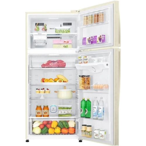 LG GR-H802HEHL бежевый Тип: холодильник с морозильником Расположение морозильной камеры:с верху Управление: электронное Цвет: бежевый Полезный объём: 592 л Объём холодильной камеры: 418 л Объём морозильной камеры: 174 л Кол-во компрессоров: 1 Инверторный компрессор: да Кол-во камер: 2 Кол-во дверей: 2 Стеклянные двери: нет Сигнализация: есть Энергопотребление: 320 кВтч/год Класс энeргопотребления: A++ Климатический класс: N-T (от +16 до +43С) Уровень шума: 38 дБ Холодильная камера: есть Размораживание холодильной камеры: No Frost Морозильная камера: есть Размораживание морозильной камеры: No Frost Зона свежести: да Льдогенератор: нет Материал полок: стекло Высота: 184 см Ширина: 86 см Глубина: 73 см Вес: 88 кг Бренд: LG Модель: GR-H802HEHL бежевый