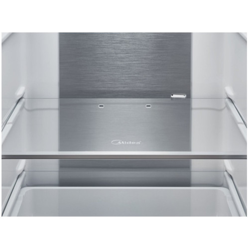 Холодильник Midea MRS520SFNX1 представляет собой сочетание элегантного дизайна и современной функциональности. Благодаря общему объёму 350 л он идеально подойдёт большой семье. Уровень шума, не превышающий 40 дБ, не превращает его в источник дискомфорта. Электронная система управления и сенсорный дисплей обеспечивают полный контроль над настройками. Система размораживания Full Nofrost- безграничный комфорт и никаких забот! В холодильниках Midea используется технология Full NoFrost, которая предотвращает образование наледи и инея на полках, стенках и на самих продуктах внутри морозильной камеры. Теперь можно забыть об утомительной разморозке и быть уверенными в том, что в контейнерах и на полках нет ничего лишнего - только продукты. LED- дисплей - основной элемент управления холодильником. Можете корректировать температурный режим в холодильной и морозильной камерах , включать дополнительные функции и блокировать систему управления от случайного изменения параметров. Функция суперзаморозки. Возможность минимизировать стадию образования крупных кристаллов влаги в замораживаемых продуктах, тем самым избежать повреждения их тканей и максимально сохранить качественные и вкусовые характеристики продуктов. Ящик Chiller Zone - зона сохранения свежести, обеспечивает длительное хранение продуктов.