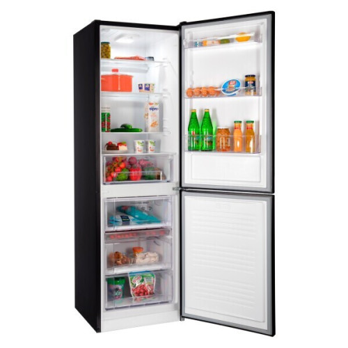 Отдельностоящий двухкамерный холодильник NORDFROST NRG 152 B с нижним расположением морозильной камеры имеет общий объем 320 л . Стеклянный фасад холодильника сочетает в себе эстетику и функциональность, а уникальный цвет «черный перламутр» подчеркивает его утонченность и отлично сочетается с любым дизайном кухонного гарнитура. Большая интегрированная ручка облегчает открывание и закрывание холодильника, делая его использование максимально удобным. Еще одно преимущество вертикальных интегрированных ручек – отсутствие выступающих элементов. Такое решение придает кухне современный вид и эстетическую привлекательность. Двери модели перенавешиваются с правой стороны налево для удобства установки холодильника в необходимом месте. Устройство с системой размораживания DeFrost характеризуется высоким классом энергоэффективности А+ и низким уровнем шума до 40 дБ. Морозильная камера с полезным объемом 115 л имеет ручную систему размораживания и мощность заморозки до 4,5 кг в сутки. Диапазон температурного режима в холодильной камере 0…+8°С, в морозильной не выше -18°С. Внутренняя эргономика пространства - экономичное LED-освещение в холодильной камере; - 4 полки из закаленного стекла в холодильном отделении; - большой выдвижной ящик для овощей и фруктов; - 3 полки на двери; - 3 ящика в морозильном отделении, где 2 из них повышенного объема – позволяют поместить и длительно хранить большие куски мяса, курицу целиком и другие объемные замороженные продукты; - лоток для заморозки ягод. Внутренняя посуда холодильника имеет красивый серебристый отлив и инфографику на ящиках и дверных полках. Ламинированная внутренняя поверхность холодильника имеет антибактериальное покрытие. При необходимости чистки или замены уплотнитель двери легко снимается и ставится обратно.