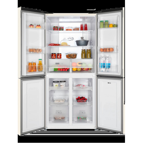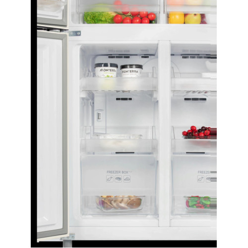 Отдельностоящий, стильный и вместительный холодильник NORDFROST RFQ-510 NFGI типа Cross Door с общим объемом 470 литров - прекрасное решение для хранения большого количества продуктов и напитков в частных и загородных домах. Модель выполнена в бежевом цвете». Модель обладает высоким классом энергоэффективности А+, низким уровнем шума и долгим сроком эксплуатации, благодаря инверторному компрессору. С системой Total No Frost на стенках холодильника не образовывается наледь и иней, что навсегда избавит пользователя от ручного размораживания. Достаточно обычного ухода раз в 6 месяцев. 4-х дверный холодильник имеет единое пространство верхних полок холодильной камеры, чтобы удобно было размещать габаритные кастрюли и контейнеры. Прочные полки из закаленного стекла можно регулировать по высоте, а ящики в холодильной камере предназначены для хранения овощей и фруктов и оснащены влажной зоной свежести и сухой. Модель имеет LED – освещение в холодильном отделении, а так же сенсорное управление с фантомным дисплеем, на котором отображается температура и режимы работы. Режимы «Суперзаморозка» до -30°С и «Суперохлаждение» до +2°С обеспечивают быстрое охлаждение продуктов в морозильной и холодильной камерах и далее поддерживают оптимальную температуру для хранения. Режим «Сохранения свежести» - технология естественной ионизации, которая создает наиболее комфортный микроклимат для хранения продуктов, а также препятствует образованию бактерий, неприятных запахов и преждевременной порче свежих овощей, фруктов, яиц или сыров. Режим «Энергосбережение» позволит перевести холодильник в состояние пониженного потребления электроэнергии, при этом сохраняя оптимальный микроклимат внутри холодильника. Функция блокировки с предупреждающим звуковым сигналом, если дверь открыта более 1 минуты, на дисплее отобразит код ошибки dR. Особенности и преимущества: - 4 двери; - инверторный компрессор; - Total No Frost; - сенсорное управление; - цвет: бежевое стекло. Гарантия на холодильник NORDFROST – 2 года. Типмногодверный Тип компрессораинверторный Общий объем, л470 Полезный объем, л427 Объем холодильной камеры (ХК), л286 Объем морозильной камеры (МК), л141 Материалстекло Высота х Ширина х Глубина, см183.4 х 83 х 66.2 Вес Нетто, кг87 Управлениеэлектронное (сенсорное) Класс энергоэффективностиA+ ХладагентR600a (изобутан) Панель управленияда Температура в ХК+2°С...+9°С Количество полок ХК3 Тип полок в ХКзакаленное стекло Ящик для овощей ХК2 Освещение в ХКLED-подсветка Система оттаивания ХКNO FROST Количество полок на дверце ХК6 Температура в МК-15°С...-24°С Количество выдвижных ящиков в МК2 Система оттаивания МКNO FROST Режим суперзаморозкада Производительность замораживания, кг/сут7 Уровень шума, дБ41 Ручкиинтегрированные вертикальные Индикация режимов работыда Испарительзапененный Цветбежевое стекло Термостатнастраиваемый Макс. потребляемая мощность, Вт120 Количество компрессоров1 Количество дверей, шт.4 Автономное сохранение холода, ч11 Климатический классSN/N/ST Диапазон номинальных напряжений, В220-240 Частота тока, Гц50 Энергопотребление, кВт*ч/год351 Индикацияда Режим "Суперохлаждение"да Лоток для льдада Поддон выдвижной, шт.4 Гарантийный срок2 года Страна производительКитай ПроизводительNORDFROST
