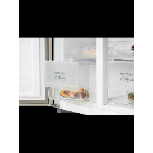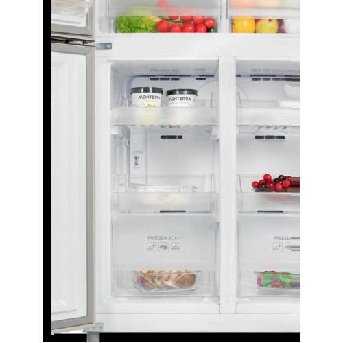 Отдельностоящий, стильный и вместительный холодильник NORDFROST RFQ-510 NFH типа Cross Door с общим объемом 470 литров - прекрасное решение для хранения большого количества продуктов и напитков в частных и загородных домах. Модель выполнена в привлекательном цвете «шампань». Модель обладает высоким классом энергоэффективности А+, низким уровнем шума и долгим сроком эксплуатации, благодаря инверторному компрессору. С системой Total No Frost на стенках холодильника не образовывается наледь и иней, что навсегда избавит пользователя от ручного размораживания. Достаточно обычного ухода раз в 6 месяцев. 4-х дверный холодильник имеет единое пространство верхних полок холодильной камеры, чтобы удобно было размещать габаритные кастрюли и контейнеры. Прочные полки из закаленного стекла можно регулировать по высоте, а ящики в холодильной камере предназначены для хранения овощей и фруктов и оснащены влажной зоной свежести и сухой. Модель имеет LED – освещение в холодильном отделении, а так же сенсорное управление с цифровым дисплеем, на котором отображается температура и режимы работы. Режимы «Суперзаморозка» до -30°С и «Суперохлаждение» до +2°С обеспечивают быстрое охлаждение продуктов в морозильной и холодильной камерах и далее поддерживают оптимальную температуру для хранения. Режим «Сохранения свежести» - технология естественной ионизации, которая создает наиболее комфортный микроклимат для хранения продуктов, а также препятствует образованию бактерий, неприятных запахов и преждевременной порче свежих овощей, фруктов, яиц или сыров. Режим «Энергосбережение» позволит перевести холодильник в состояние пониженного потребления электроэнергии, при этом сохраняя оптимальный микроклимат внутри холодильника. Функция блокировки с предупреждающим звуковым сигналом, если дверь открыта более 1 минуты, на дисплее отобразит код ошибки dR. Особенности и преимущества: - 4 двери; - инверторный компрессор; - Total No Frost; - сенсорное управление; - цвет: шампань; - материал дверей: металл. Гарантия на холодильник NORDFROST – 2 года. Типмногодверный Тип компрессораинверторный Общий объем, л470 Полезный объем, л427 Объем холодильной камеры (ХК), л286 Объем морозильной камеры (МК), л141 Материалметалл Высота х Ширина х Глубина, см183.4 х 83 х 66.2 Вес Нетто, кг87 Управлениеэлектронное (сенсорное) Класс энергоэффективностиA+ ХладагентR600a (изобутан) Панель управленияда Температура в ХК+2°С...+9°С Количество полок ХК3 Тип полок в ХКзакаленное стекло Ящик для овощей ХК2 Освещение в ХКLED-подсветка Система оттаивания ХКNO FROST Количество полок на дверце ХК6 Температура в МК-15°С...-24°С Количество выдвижных ящиков в МК2 Система оттаивания МКNO FROST Режим суперзаморозкада Производительность замораживания, кг/сут7 Уровень шума, дБ41 Ручкиинтегрированные горизонтальные Индикация режимов работыда Испарительзапененный Цветшампань Термостатнастраиваемый Макс. потребляемая мощность, Вт120 Количество компрессоров1 Количество дверей, шт.4 Автономное сохранение холода, ч11 Климатический классSN/N/ST Диапазон номинальных напряжений, В220-240 Частота тока, Гц50 Энергопотребление, кВт*ч/год351 Индикацияда Режим "Суперохлаждение"да Лоток для льдада Поддон выдвижной, шт.4 Гарантийный срок2 года Страна производительКитай ПроизводительNORDFROST