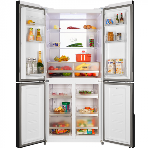 Отдельностоящий, стильный и вместительный холодильник NORDFROST RFQ 510 NFW типа Cross Door с общим объемом 470 литров - прекрасное решение для хранения большого количества продуктов и напитков в частных и загородных домах. Модель выполнена в привлекательном цвете «графитовый». Модель обладает высоким классом энергоэффективности А+, низким уровнем шума и долгим сроком эксплуатации, благодаря инверторному компрессору. С системой Total No Frost на стенках холодильника не образовывается наледь и иней, что навсегда избавит пользователя от ручного размораживания. Достаточно обычного ухода раз в 6 месяцев. 4-х дверный холодильник имеет единое пространство верхних полок холодильной камеры, чтобы удобно было размещать габаритные кастрюли и контейнеры. Прочные полки из закаленного стекла можно регулировать по высоте, а ящики в холодильной камере предназначены для хранения овощей и фруктов и оснащены влажной зоной свежести и сухой. Модель имеет LED – освещение в холодильном отделении, а так же сенсорное управление с цифровым дисплеем, на котором отображается температура и режимы работы. Режимы «Суперзаморозка» до -30°С и «Суперохлаждение» до +2°С обеспечивают быстрое охлаждение продуктов в морозильной или холодильной камере и далее поддерживают оптимальную температуру для хранения. Режим «Сохранения свежести» - технология естественной ионизации, которая создает наиболее комфортный микроклимат для хранения продуктов, а также препятствует образованию бактерий, неприятных запахов и преждевременной порче свежих овощей, фруктов, яиц или сыров. Режим «Энергосбережение» позволит перевести холодильник в состояние пониженного потребления электроэнергии, при этом сохраняя оптимальный микроклимат внутри холодильника. Функция блокировки с предупреждающим звуковым сигналом, если дверь открыта более 1 минуты, на дисплее отобразит код ошибки dR. Гарантия на холодильник NORDFROST – 1 год.