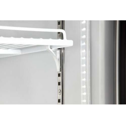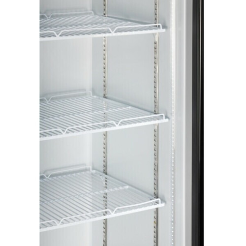 Вертикальная витрина холодильная NORDFROST RSC 400 GB объемом 370 литров и высотой 197 см подходит для демонстрации и реализации продуктов, кондитерских изделий, напитков и закусок . Ультрасовременный и привлекательный дизайн модели украсит интерьер торговой площадки и поможет привлечь внимание клиентов к товарам. Более тонкая дверная рама в сочетании с двухслойным закаленным стеклом обеспечивает лучший визуальный эффект за счет меньшей площади рамы, а обновленная передняя металлическая решетка с улучшенной фиксацией обеспечивает мощную защиту. Шкаф-витрина оборудован системой оттаивания No Frost, отличается низким потреблением электроэнергии и высокой производительностью. Холодильная витрина имеет собственную запатентованную систему LED-освещения, яркие светодиоды внутри витрины и в лайтбоксе, расположенном в верхней части витрины, обеспечивают привлекательный и яркий эффект. Лайтбокс служит в качестве вывески или рекламного блока. Модель имеет 4 полки. Они регулируются, поэтому на них можно разложить продукты разной формы и высоты. Максимальная загрузка полки – 24 кг. Регулировка температуры с диапазоном от +1 до +10°C задается установкой ручки терморегулятора на выбранный режим. Четыре колесика способствуют удобному перемещению холодильной витрины. Фасад модели выполнен в черном цвете.