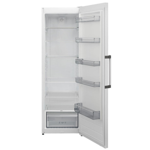 Однокамерный холодильник Scandilux R 404 Z01W белый оснащен автоматической статической системой размораживания – Static System. Холодильное отделение удобно разделено 5 полками, изготовленных из закаленного стекла, легко перемещаются по высоте и выдерживают большой вес без повреждений. На двери 5 полок для длительного хранения продуктов, а также глубокая полка с высокими бортами для бутылок и пакетов с соком. Ббольшой ящик для овощей и фруктов - Maxi Fresh Zone с регулировкой влажности Humidity Control. Яркая белая светодиодная подсветка с трех сторон, расположенное вверху и по бокам камеры, делают внутренне пространство еще доступнее. Возможность комбинации Side-by-Side с морозильной камерой FS 711 Y02 W.