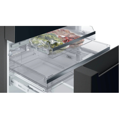 Siemens KF96RSBEA Тип: холодильник Тип компрессора: инверторный Количество камер: 3 Тип управления: электронное Управление: сенсорное Цвет корпуса: черный Количество компрессоров: 1 Количество дверей: 3 Общий объем: 572 л Морозильная камера: снизу Класс энергопотребления: A Объем холодильной камеры: 401 л Объем морозильной камеры: 171 л Размораживание морозильной камеры: No Frost Размораживание холодильной камеры: No Frost Уровень шума: 39 дБ Хладагент: R600A (изобутан) Материал полок: стекло Дополнительные возможности: суперзаморозка Габариты (ШxГxВ): 90x73x183 см