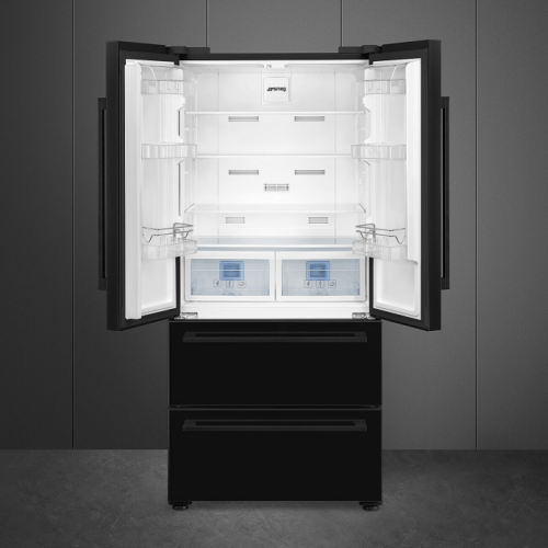SMEG FQ55FNDE Цвет: Черный Отделка: Глянцевый Эстетика: Универсальный Дизайн: Плоский Материал: Окрашенный металл Ручка: Внешняя Тип ручки: Фиксированный Цвет ручек: Черный Материал боковин: Сталь Цвет боковин: Черный Дисплей: LED Расположение дисплея: Внешний, на дверце Цвет логотипа: Хромированный Цвет профиля на полках дверцы: Серебристый Цвет профиля на выдвижных ящиках: Серебристый Цвет профиля на стеклянных полках: Серебристый Характеристики холодильного отделения Количество регулируемых полок: 3 Количество ящиков для овощей и фруктов: 2 Тип регулируемых полок: Стекло Тип ящика для овощей и фруктов: На скользящих направляющих Крышка ящика для овощей: Да Тип крышки ящика для овощей и фруктов: Стекло Внутренняя подсветка холодильного отделения: Да Тип подсветки холодильного отделения: LED Дверца холодильного отделения Количество полок с прозрачной крышкой: 2 Количество регулируемых полок на дверце: 4 Регулируемая полка с металлической окантовкой: Да Количество полок для бутылок: 2 Полка для бутылок с металлической окантовкой: Да Аксессуары: Подставка для яиц Natural Plus Blu Light: Да MultiFlow: Да Конвекция: Да Антибактериальный фильтр: Да Характеристики морозильного отделения Количество ящиков: 2 Аксессуары: 1 форма для льда Зона быстрой заморозки: Да Другие технические характеристики Функции на дисплее: Функция