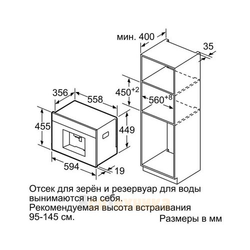 | Габариты ниши для встраивания (Ш х В х Г), см | 56-56.8 х 45-45.2 х 40 |