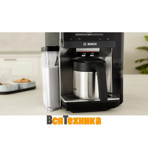 Полностью автоматическая кофемашина Bosch TQE80703 с интегральной капучинатором, рассчитанная на приготовление 36 видов напитков из свежесмолотых зерен. Выполнена в премиальном дизайне из нержавеющей стали и пластика. Оснащена керамическими жерновами, автоматической системой очистки молочной линии (milkClean), функцией одновременного приготовления двух чашек (OneTouch Double Cup) и поддержкой умного управления Home Connect. Компактные габариты и интуитивный сенсорный интерфейс делают её идеальной для ежедневного использования.
