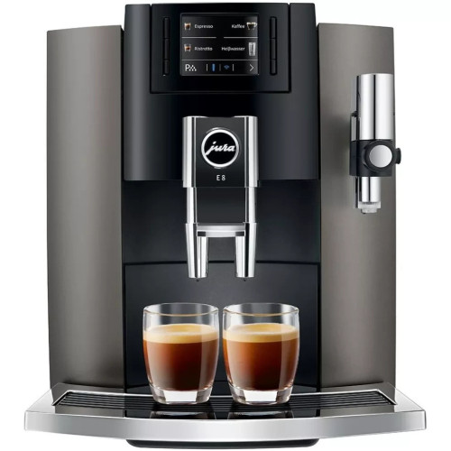 Новая насадка для приготовления мелкоячеистой пены G2 изготовлена из высококачественных материалов и может служить образцом для подражания на визуальном и тактильном уровне. Разработанная специально для приготовления кофейных напитков с молочной пеной, она неизменно украшает капучино и другие похожие напитки мелкоячеистой пеной высочайшего качества. Самая успешная автоматическая кофемашина от JURA была вновь усовершенствована. Теперь E8 может приготовить в общей сложности двенадцать напитков одним нажатием кнопки. Подкупающими новинками являются также эспрессо макиато, двойной эспрессо, специальный кофе, а также вода для зеленого чая, которые можно приготовить одним нажатием кнопки. Благородный гофрированный дизайн бункера для воды акцентирует четкие формы. При прикосновении к металлической ручке бункера для воды ощущается высокое качество. На новой хромированной подставке для чашек идеально приготовленные кофейные напитки смотрятся наилучшим образом. Привлекательный дизайн. Высокое качество как классических, так и модных напитков гарантируют сразу несколько высокотехнологичных инноваций: кофемолка перемалывает кофейные зерна в два раза быстрее, при этом максимально сохраняя их аромат. Процесс импульсной экстракции (P.E.P.®) оптимизирует время экстракции для кофейных напитков с коротким временем приготовления, гарантируя фейерверк вкуса при дегустации наших ристретто и эспрессо.