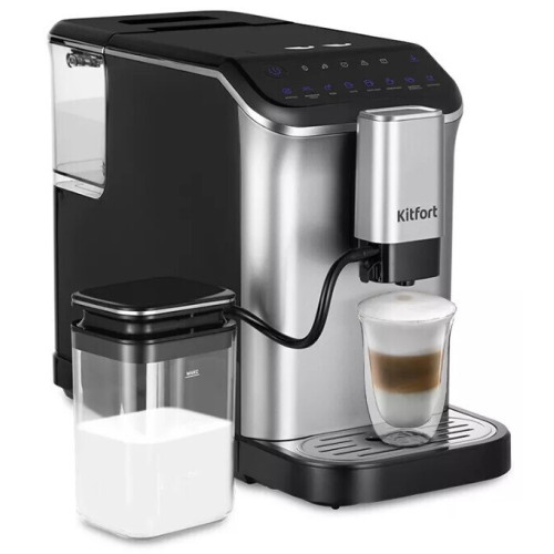 Автоматическая кофемашина Kitfort КТ-7166 — отличный выбор для гурманов, которые не желают тратить много времени и сил, чтобы насладиться полным букетом вкуса свежего кофе. Особая технология приготовления позволяет сохранить большое количество полезных веществ и тонкий аромат напитка. Кофемашина готовит ароматный эспрессо, двойной эспрессо, капучино, латте и молочную пенку одним нажатием кнопки. В отличие от рожковых кофеварок с трубкой подачи пара или со стимером, в которых молочную пенку необходимо делать самостоятельно, в автоматической кофемашине вам потребуется нажать только на одну кнопку, чтобы получить однородную пенку с сладковато-сливочным вкусом. При необходимости вы можете налить только горячую воду, не включая процесс приготовления кофе. Основой для приготовления напитков в большинстве программ кофемашины является эспрессо. Эспрессо — это особый способ приготовления кофе. Чаще всего слово «espresso» переводят как: «под давлением», «быстрый», «выразительный». При методе «эспрессо» вода заливается в резервуар, подкачивается в бойлер, там нагревается до температуры 92–95 °C и под давлением проходит через молотый кофе. Так как процесс происходит под высоким давлением, то из кофе выделяется максимальное количество полезных и ароматических веществ. Кофе получается очень вкусным, ароматным и с пенкой. Пенка на эспрессо называется крема, она состоит из углекислого газа, эфирных масел и частичек кофе. По качеству крема определяют свежесть кофе. Чем она объемнее и стойче, тем более свежий кофе. Несмотря на сильный аромат и полный вкус, эспрессо содержит в 2–3 раза меньше кофеина, чем порция чая, кофе по-восточному или растворимого кофе.
