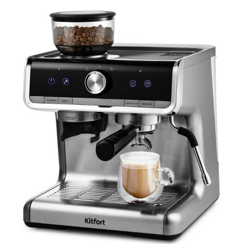 Кофемашина Kitfort КТ-789 позволяет приготовить бодрящий напиток в домашних условиях или офисе. Модель оборудована встроенной кофемолкой. Металлические жернова обеспечивают равномерное и однородное измельчение зерен. Благодаря этому сохраняются насыщенный вкус и аромат кофе. С помощью панели управления с индикаторами удобно выбирать необходимый вид напитка, а также следить за состоянием устройства. Измельченные зерна укладывают в рожок, уплотняют темпером и устанавливают в крепление. Горячая вода, проходя через порошок под давлением, обеспечивает получение вкусного эспрессо без примеси гущи. Кофемашина Kitfort КТ-789 оснащена встроенным капучинатором, который обеспечивает быстрое взбивание молочной пены паром. Это способствует комфортному приготовлению напитков на основе эспрессо. Элемент также оптимален для подогрева чая или молока. Контейнер объемом 2,8 л предназначен для чистой воды. За счет съемной конструкции и широкой откидной крышки резервуар удобно мыть. Устройство оборудовано платформой для подогрева или просушивания чашек после мытья. Кофемашина Kitfort КТ-789 имеет рожок с металлическим фильтром. Благодаря этому не требуется использование одноразовых расходных материалов. Разборный поддон предназначен для сбора капель. Элемент удобно мыть, что способствует комфортному уходу за устройством. Съемные элементы необходимо очищать после использования вручную без добавления агрессивного средства и тщательно просушивать.