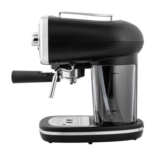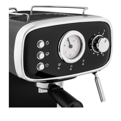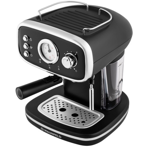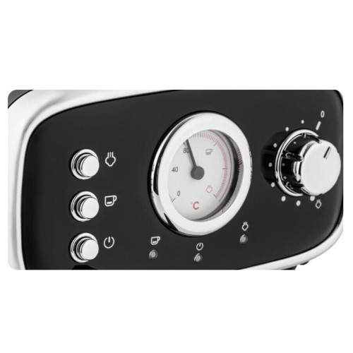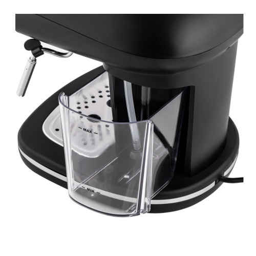 Рожковая кофемашина в ретро-стиле мощностью 1100 Вт – это исполненная мечта кофемана. Давление в 15 бар, создаваемое в кофеварке, позволит получить прекрасный кофе за несколько секунд. Большой контейнер для воды на 1,2 л сделан из матового пластика. Компактная кофемашина не занимает много места, но и благодаря стильному современному дизайну лаконично и гармонично впишется в интерьер любой кухни. Прибор оснащен ручным капучинатором, встроенной трубкой подачи пара, которая, в свою очередь, позволяет получать плотную молочную пенку. Преимущество данной модели — комфорт и удобство при эксплуатации. Модель оснащена подставкой для хранения и сушки чашек. Панель с механическим управлением понятно интуитивно: на каждой из кнопок расположены подсказки. Съемный поддон для капель позволяет экономить время на содержании прибора в чистоте.