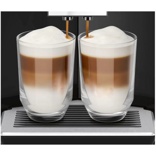 Общие характеристики Тип устройства кофемашина Тип автоматическая Технические характеристики Количество групп 1 Используемый кофе молотый / зерновой Тип управления электронное Мощность 1500 Вт Объем 2.3 л Максимальное давление 19 бар Манометр нет Настройки контроль крепости кофе, регулировка температуры кофе, регулировка порции горячей воды, быстрый пар Автоматическая декальцинация есть Регулировка жесткости воды есть Возможность приготовления капучино есть, автоматическое приготовление Тип напитка латте, капучино, эспрессо, латте макиато, ристретто Таймер есть Автоотключение есть Конструкция Встроенная кофемолка есть, регулировка степени помола, емкость контейнера для зерен 290 г Противокапельная система нет Одновременное приготовление двух чашек есть Дисплей есть, с подсветкой Подача горячей воды есть Подогрев чашек есть Контейнер для отходов есть Съемный лоток для сбора капель есть Особенности Материал корпуса пластик Индикатор уровня воды есть Индикация включения есть Размеры (Ш*В*Г) 29x39x47 см Вес 11.5 кг Дополнительная информация возможность запрограммировать рецепты напитков для 6 пользователей; в комплекте: мерная ложка, тест-полоска для определения жесткости воды, фильтр для воды